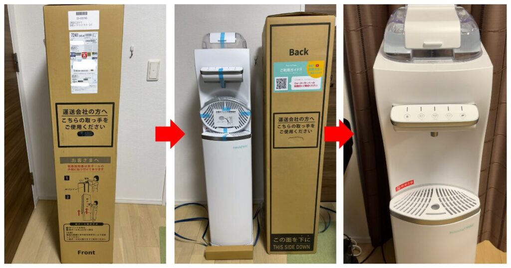 ハミングウォーターは宅配業者が配送をしてくれるので、基本的には自分で設置する必要があります。