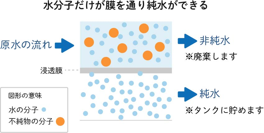 RO(逆浸透膜)は『Reverse Osmosis Membrane』の略です。