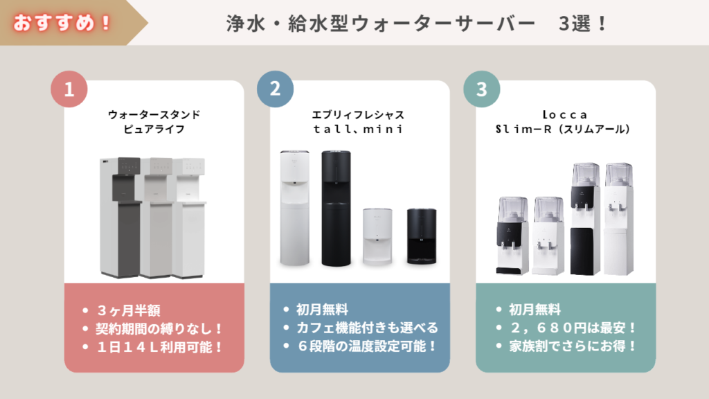 浄水・給水型ウォーターサーバーのおすすめ3選! まとめ